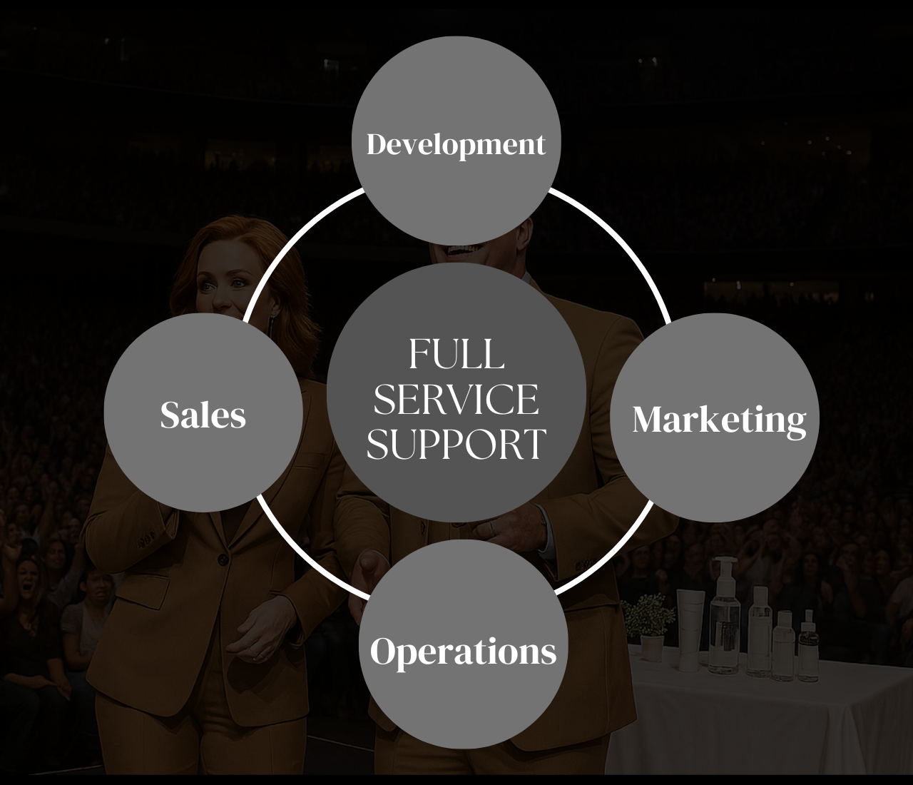 We become your growth partner — building and managing your revenue streams over time. We invest our time, talent and resources to build the strategy, products, services and implementation plan to scale your revenue long-term - and we only succeed when you do. Designed for creators and organizations ready to scale with a trusted ally.